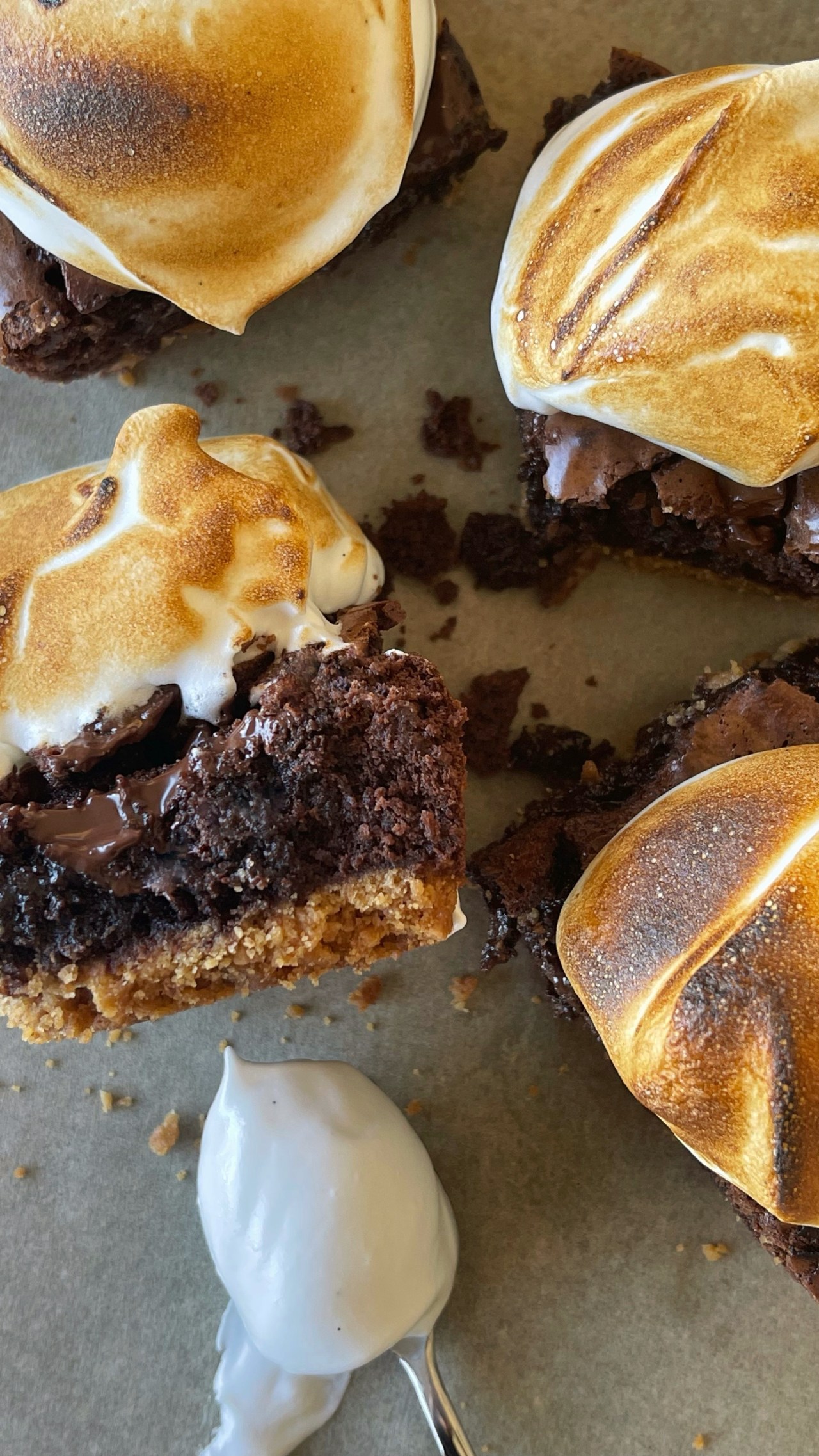 - Add a scoop of marshmallow fluff to each brownie and torch before serving.
